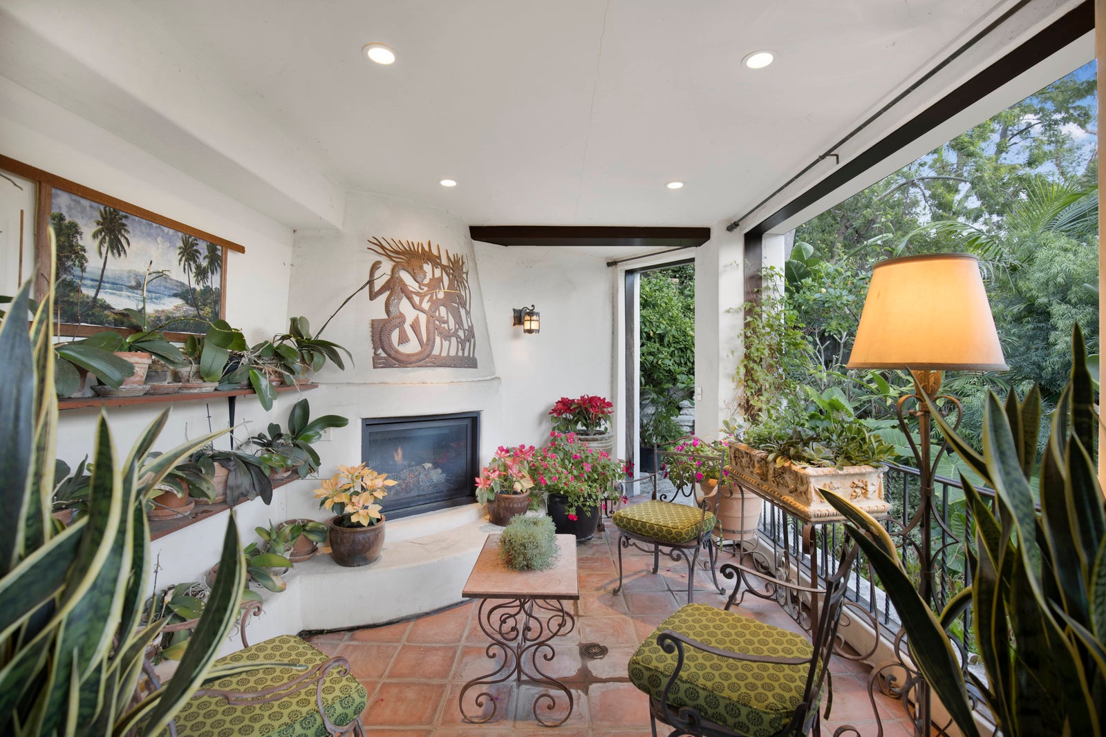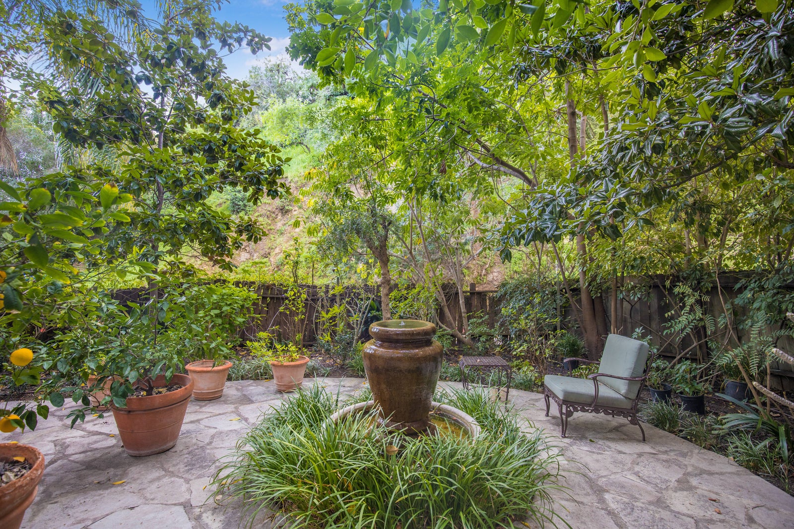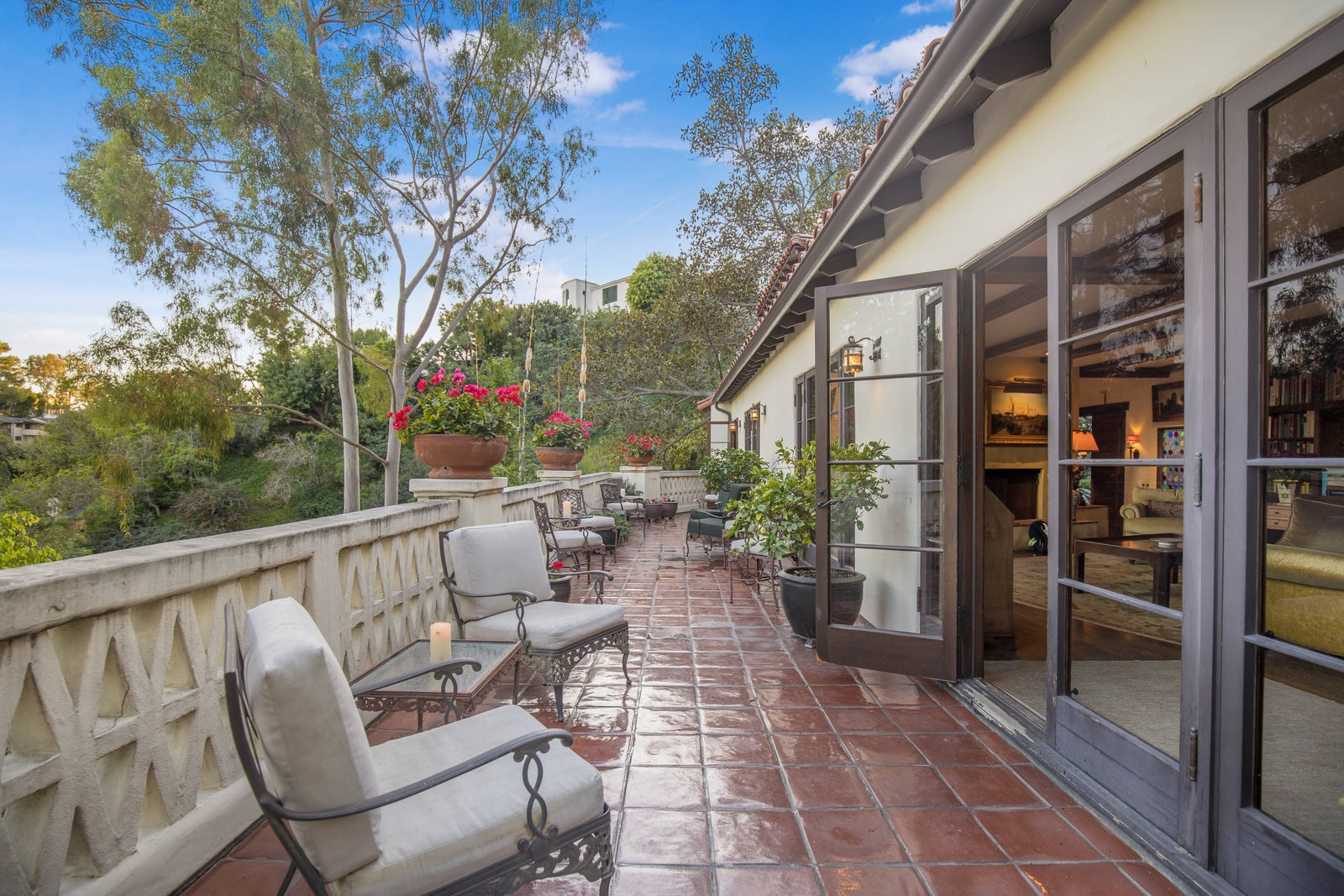 Two expansive terraces capture sweeping views across Hollywood and toward the greater Los Angeles skyline, extending to Long Beach in the distance. The property's multilevel gardens feature mature trees of every type, pathways, fountains, multiple patios and year-round blooming landscape.