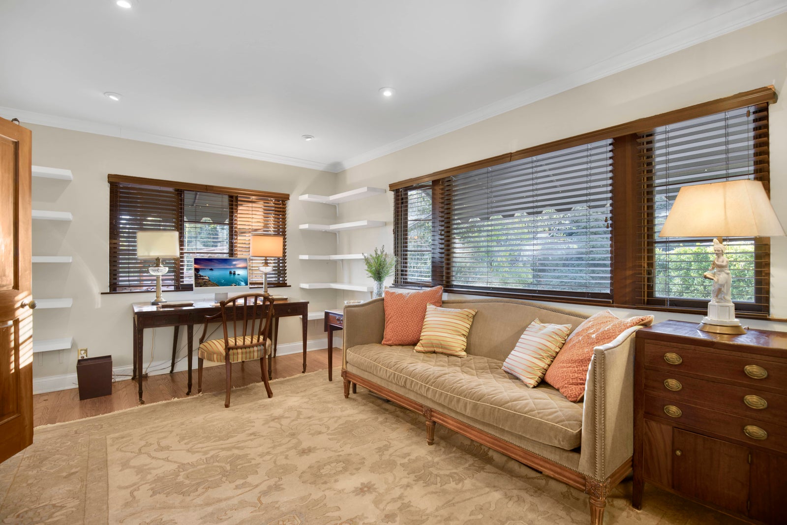 Positioned above the Hollywood Bowl, the home combines proximity to Downtown Hollywood and the 101 Freeway with a notably quiet, residential setting. The location provides convenient access to UCLA, USC, and California Institute of Technology.